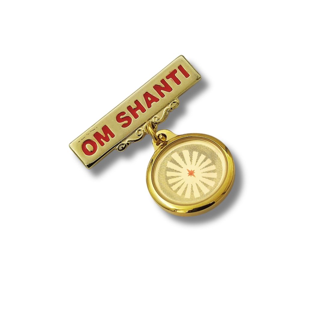 - This exquisite 24K gold-plated Badge celebrates the divine grace of Shiv Baba and Laxmi Narayan, beautifully showcased on its double-sided design.
