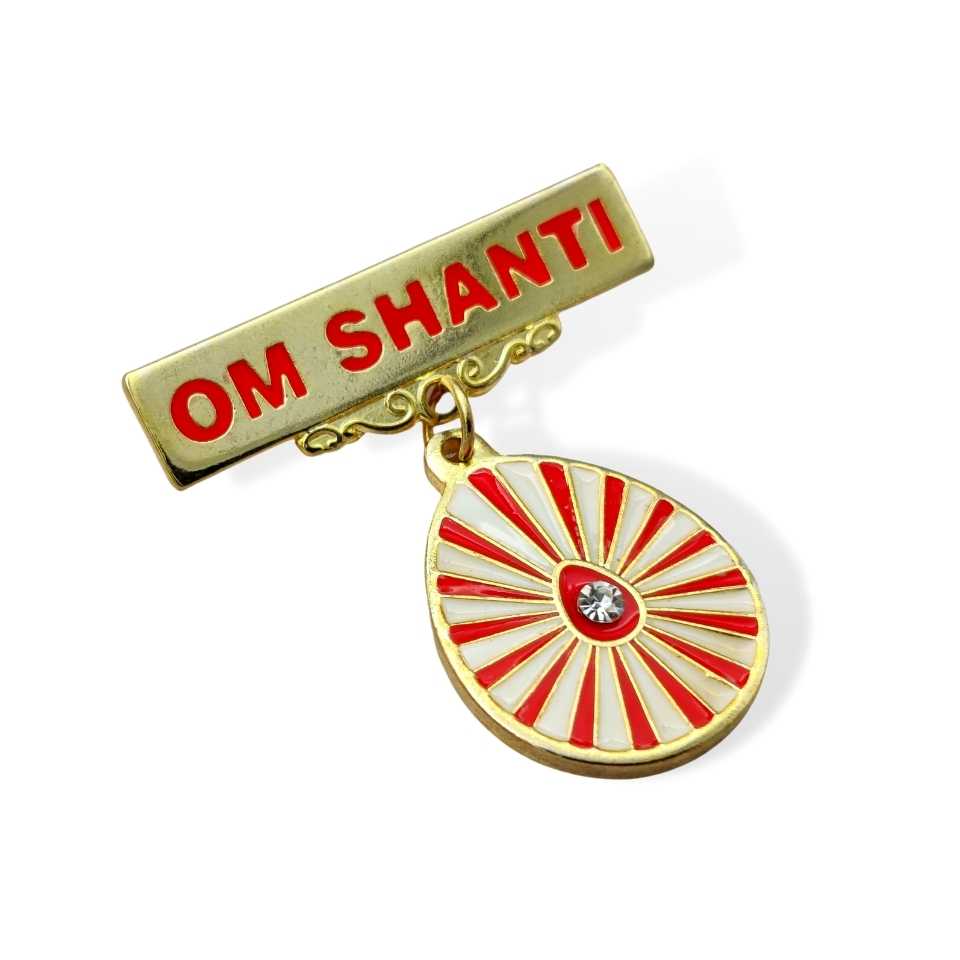 - Shiv Baba Badge With White & Red Rays On It.