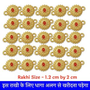 यह राखी पैकेट में आती है। 1 पैकेट में 100 पीस आते है। आपको पूरा 1 पैकेट राखी खरीदना है, जिसकी प्राइस 150 रुपये है। यह राखी मे प्रोपर रेड मीना के साथ गोल्डेन शिव बाबा पॉइंट है।