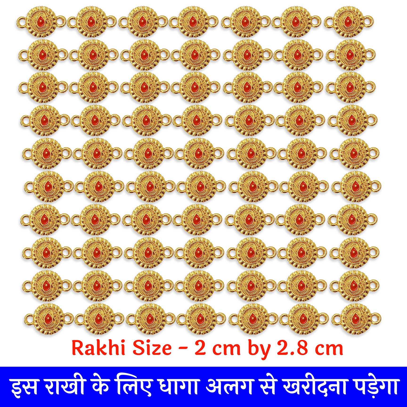 यह राखी पैकेट में आती है। 1 पैकेट में 100 पीस आते है। आपको पूरा 1 पैकेट राखी खरीदना है, जिसकी प्राइस 350 रुपये है। यह राखी मे प्रोपर रेड मीना के साथ गोल्डेन शिव बाबा पॉइंट है।